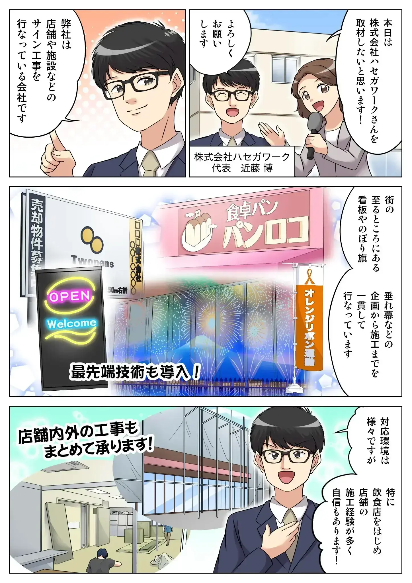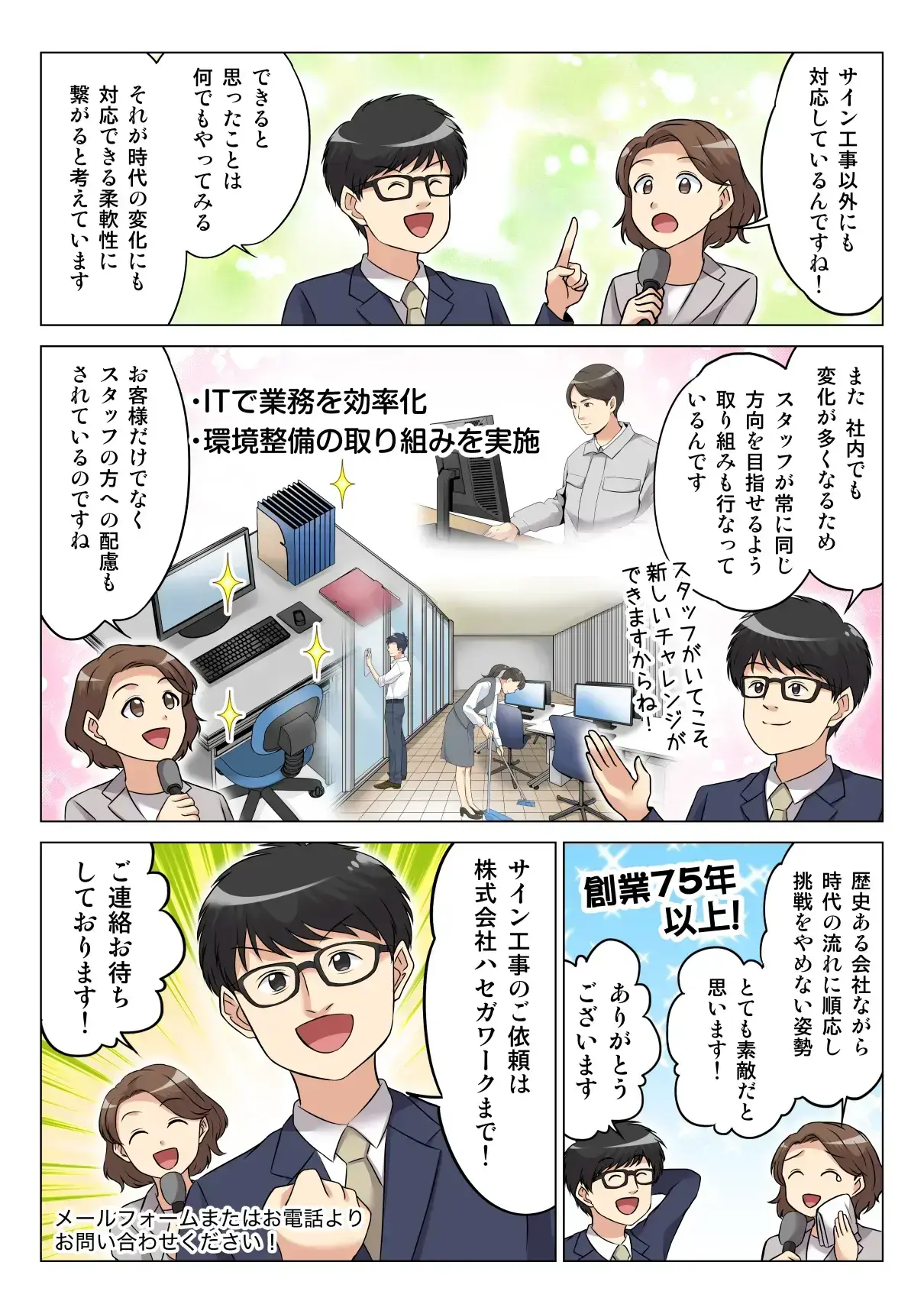 私たちは、社員全員の安全と健康を確保し、お客様に安全安心なサイン広告を提供します。