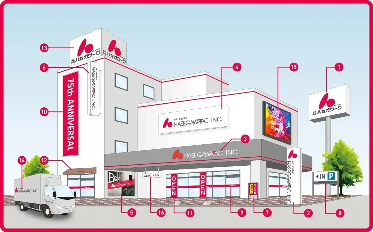看板の点検、修理、広告物申請・更新、工作物申請も承ります。工事などをお考えのお客様はお気軽にハセガワークにお問い合わせください。